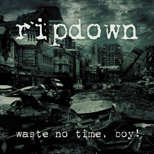 Das Cover zeigt eine verwüstete Stadt in Kombination mit dem Bandschriftzug und dem Albumnamen „waste no time, boy!“ im nicht ganz Genre-untypischen Distressed-Style und in einem düsteren Duplex-Farblook. Bild und Albumtitel passen auf jeden Fall sehr gut zusammen, und nachdem man sich das gute Stück angehört hat, findet man das Artwork noch passender.
